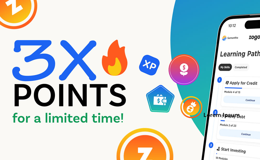 Zogo is a gamified financial literacy app that rewards users for completing bite-sized financial literacy lessons on intelligently saving, spending, and managing their money. The app includes nearly 400 modules in 22 different topics, from opening an account to saving for retirement – and everything in between.